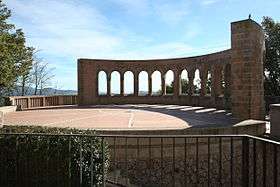 In 1955 the Terç ex-combatant, Salvador Nonell Brú, published its history.[74] The bid to construct a mausoleum located within the Montserrat complex was initially opposed by Franco, who claimed that all the fallen should rest at Valle de los Caídos;[75] the mausoleum was finally opened in 1961.[76] In 1965 a requeté monument was unveiled in front of it;[77] the original site layout was blurred in the decades to come.[78] Commemorating crosses were erected also in Codo and in Vilalba dels Arcs. Today the Mausoleum remains closed and visitors are admitted by individual appointment;[79] it is owned by Hermandad de Ex Combatientes del Tercio de Requeté de Nostra Señora de Montserrat, the organisation founded in the late 1950s.[80]