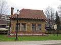 Terra Cotta Building is a historic office building and display center located at Alfred in Allegany County, New York. It was built in 1892 by the Celadon Terra Cotta Co and later sold in 1906, to the Ludowici Company of Ohio, which became the Ludowici-Celadon Company.[2] It is a one-story, 16-foot-wide (4.9 m), 25-foot-deep (7.6 m) building built almost entirely of terra cotta bricks, ornamental and roofing tiles manufactured by Celadon.[3] The building was designed as a sales office for the company, and was considered a "catalog" of their work. A replica was erected at the 1893 Columbian Exposition in Chicago.[4] The building was the only remaining structure after a fire broke out on August 29, 1909 and destroyed what was at the time called Ludowici-Celadon Company.[5]