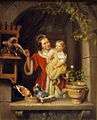 The selection of paintings was done mostly according to the advice of the curator and concierge, who lived in the Fundatiehuis. For the early days this was Vincent Jansz van der Vinne. Van der Vinne was replaced by Wybrand Hendriks, whose own works, those of his friends, and works by his successor Gerrit Jan Michaëlis hang in the gallery. No works by Van der Vinne are represented, who left Teylers after a disagreement with Martin van Marum. One of the first large canvases to be purchased (1825) was Storm at sea, by the marine painter Johannes Christiaan Schotel. A few years later, its counterpart was ordered: Calm sea.[2] It is striking that, in the early period, paintings were often bought in pairs.