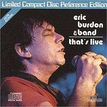 That’s Live is a live album by Eric Burdon and his band, recorded live in Karlsruhe, Germany, on 8 March 1985, during a European tour. It was originally marked Limited Compact Disc Reference Edition in 1985, and achieved more widespread release in 1992.[1][2][3][4][5]