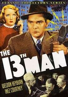 The 13th Man is a 1937 American mystery film directed by William Nigh and starring Weldon Heyburn, Inez Courtney and Selmer Jackson. The film is also known as The Thirteenth Man. It was the first film released by the relaunched Monogram Pictures after the studio withdrew from a merger with Republic Pictures.