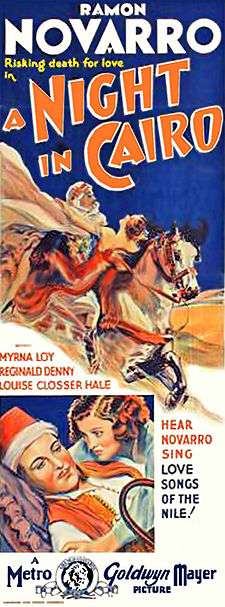 The Barbarian, also known as A Night in Cairo, is a 1933 American Pre-Code romance drama film produced and directed by Sam Wood and starring Ramon Novarro and Myrna Loy. Written by Elmer Harris and Anita Loos, and based on the play The Arab by Edgar Selwyn, the film is about an American woman tourist in Egypt who has several suitors, among them an Arab guide who is more than he seems. The film was released on May 12, 1933 in the United States by Metro-Goldwyn-Mayer. The film was filmed previously by MGM as The Arab (1924) with Novarro and Alice Terry.[1]