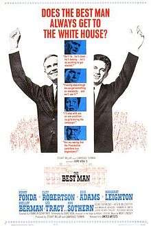 - ↑ Crowther, Bosley (April 7, 1964). "The Screen: Gore Vidal's 'Best Man':Stage Play Adaptation Opens at 2 Theaters". The New York Times. Retrieved February 2, 2011.