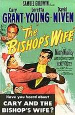 The Bishop's Wife, also known as Cary and the Bishop's Wife,[3] is a Samuel Goldwyn romantic comedy feature film from 1947, starring Cary Grant, Loretta Young, and David Niven in a story about an angel who helps a bishop with his problems. The film was adapted by Leonardo Bercovici and Robert E. Sherwood from the 1928 novel of the same name by Robert Nathan, and was directed by Henry Koster.