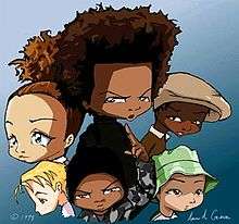 The Boondocks was a daily syndicated comic strip written and originally drawn by Aaron McGruder that ran from 1996 to 2006. Created by McGruder in 1996 for Hitlist.com, an early online music website,[1] it was printed in the monthly hip hop magazine The Source in 1997. As it gained popularity, the comic strip was picked up by the Universal Press Syndicate and made its national debut on April 19, 1999. A popular and controversial strip, The Boondocks satirizes African American culture and American politics as seen through the eyes of young, black radical Huey Freeman. McGruder's syndicate said it was among the biggest launches the company ever had.[2]