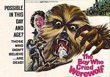 The Boy Who Cried Werewolf is a 1973 horror film directed by Nathan H. Juran.[1] The film stars Kerwin Mathews in the final film he and Juran made after their earlier work, which included The 7th Voyage of Sinbad.[2] In this thriller, a boy visits his father in a secluded cabin; the father is attacked by a werewolf and then becomes one himself. The boy constantly tries to tell others, but nobody will believe him.[3]