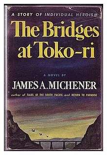 The Bridges at Toko-Ri (1953) is a novella by American author James A. Michener. The book details the experiences of United States Navy pilots in the Korean War as they undertake a mission to destroy heavily protected bridges in enemy territory.