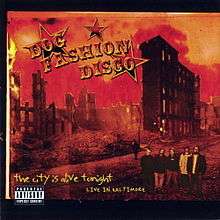 The City Is Alive Tonight...Live In Baltimore is a live album by Dog Fashion Disco released on January 25, 2005. It was recorded at Fletcher's, a club in Baltimore, MD, on June 14, 2004. It also contains the bonus DVD, DFD-Day, a recording of the day of the show, the show itself, the party afterwards, and the next morning. The songs "Worm in a Dog's Heart", "Rapist Eyes", "G Eye Joe" & Breed, however, are not present in the DVD, only in the CD. DFD-DAY was directed by Justin McConnell, and partially inspired the production of the feature documentary Working Class Rock Star. The album was re-released in 2006 through Rotten Records.[3]
