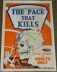 The Pace That Kills (also known as Cocaine Madness and The Cocaine Fiends) is a 1935 American exploitation film directed by William O'Connor. The film, starring Lois January, told the story of a woman called Jane Bradford, who gets involved with a drug dealer and becomes addicted to cocaine. Similar to other movies of the genre, the final film was a reissued work with additional scenes, mostly using footage from the earlier silent The Pace That Kills (1928).[1]