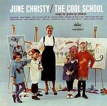 The Cool School is a 1960 album by June Christy of songs sung by children the world over accompanied by the Joe Castro Quartet. June’s daughter Shay (then aged 5) was pictured on the LP/CD cover wearing a blue smock.