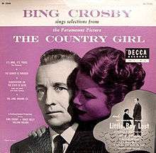 The Country Girl / Little Boy Lost is a Decca Records album by Bing Crosby of songs from the Paramount films Little Boy Lost and The Country Girl. This is not a soundtrack recording album but the songs used in the films were separately recorded for commercial release. It was issued as a 10” LP with catalog No.DL 5556.[1] The songs from “The Country Girl” were also issued on an extended play record numbered ED-2156[2] and all of the songs from both films were used in the 15-part Bing’s Hollywood series issued by Decca in 1962. [3]