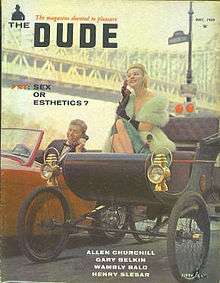 The Dude: The Magazine Devoted to Pleasure[1] was a men's magazine of the 1950s that was published bi-monthly by the Mystery Publishing Co., Inc. at 48 West 48th Street, New York, New York. The magazine was published from August 1956[1] to around 1976.