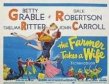 The Farmer Takes a Wife is a 1953 Technicolor musical comedy film starring Betty Grable. The picture is a remake of the 1935 film of the same name which starred Janet Gaynor and Henry Fonda. Grable and Dale Robertson first appeared together in the movie Call Me Mister (1951).