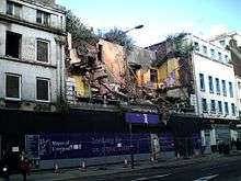 In April 2016 emergency work had to be carried out to make the building safe, with what safety inspectors described as "internal collapse, leaning walls and a high risk that cladding tiles may fall off".[13] Works to be carried out included the demolition of the facade in May. While campaigners were able to delay this demolition over safety concerns,[14] parts of the front of the building were removed.[15] In August the same year, a legal challenge to save the building's facade was rejected, with the council declaring it beyond repair.[16] By September the building had been completely demolished.[17]