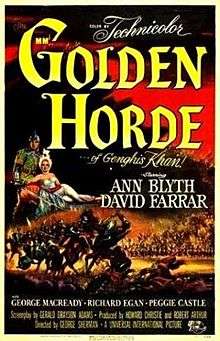 The Golden Horde is a 1951 Historical Adventure film directed by George Sherman and starring Ann Blyth and David Farrar. Many of the exterior scenes were shot in Death Valley National Park, California, USA.