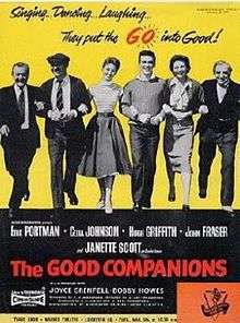 The Good Companions is a 1957 British musical film directed by J. Lee Thompson and starring Eric Portman.[2] It is based on the novel of the same name and is a remake of the 1933 film version.