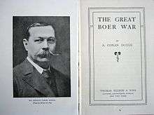 The Great Boer War is a non-fiction work on the Boer War by Arthur Conan Doyle and first published in 1900 by Smith, Elder & Co. By the end of the war in 1902 the book had been published in 16 editions, constantly revised by Doyle. The Introduction describes the book as:[1]