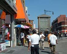 The Hub is the retail, theater, and restaurant heart of the South Bronx, New York. It is located where four roads converge: East 149th Street, and Willis, Melrose and Third Avenues.[1] It is primarily located inside the neighborhood of Melrose but also lines the northern border of Mott Haven.[2] The Hub, short for "the Hub of the Bronx,"[3][4] has also been called "the Broadway of the Bronx".[5] It is the site of both maximum traffic and architectural density. In configuration, it resembles a miniature Times Square, a spatial "bow-tie" created by the geometry of the street intersections.[6] It is a primary shopping district for Bronx residents, and many new hip hop trends can be found in the Hub long before they spread to the rest of New York City and the world. The area is part of Bronx Community Board 1.[7]