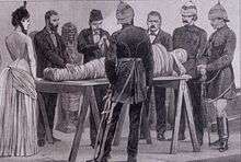Egyptology and the fascination with ancient artifacts were echoed in nineteenth-century literature. Between 1860 and 1914, hundreds of stories about Egyptian mummies, curses, and exploration were published. Roger Luckhurst situates this within a cultural trend of what he calls Egyptian Gothic, "a set of beliefs or knowledges in a loosely occult framework" developed in response to British anxieties about the rule of Egypt.[6] One common plot in these narratives was the "Mummy’s Curse", which "follows the basic plot structure of misappropriation of tomb artifacts with fatal consequences following the protagonist home and features the explicit warning 'beware of the Mummy’s Curse'”;[7] often these artifacts were possessed by some supernatural element. Mummies were often the focal point of these stories, usually of noble rank, because most of the mummies being discovered in the nineteenth century were pharaohs. There was an emphasis on the idea of perfect preservation and beauty; mummies were unraveled at museum exhibitions in British museums, and audiences were amazed by their "almost perfect condition".[8] Because of their preserved beauty, female mummies in Victorian fiction were often eroticized objects of desire.[9]