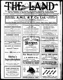 The Land first appeared in 1911 as a two penny broadsheet. It was originally published by the United Farmers and Woolgrowers' Association of New South Wales[1] and later Rural Press, which merged with Fairfax Media.[2]