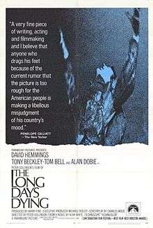 The Long Day's Dying is a 1968 British Techniscope war film directed by Peter Collinson and starring David Hemmings.[2] It was listed to compete at the 1968 Cannes Film Festival,[3] but the festival was cancelled due to the events of May 1968 in France.