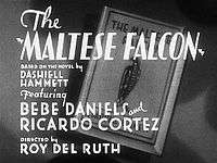 The Maltese Falcon is a 1931 American pre-Code crime film, based on the novel of the same name by Dashiell Hammett and directed by Roy Del Ruth. The film stars Ricardo Cortez as private detective Sam Spade and Bebe Daniels as Ruth Wonderly. Maude Fulton, Brown Holmes, and Lucien Hubbard (who went uncredited) wrote the screenplay.[1] The supporting cast features Dudley Digges, Thelma Todd, Walter Long, Una Merkel, and Dwight Frye.[2] The film is based on the 1929 novel The Maltese Falcon by Dashiell Hammett.[3] (Original publisher Alfred A. Knopf, Inc. in 1929.)