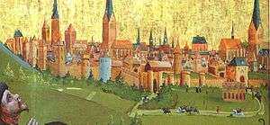 The Miraculous Draft of Fishes is a 1444 oil on wood panel painting by the Swabian artist Konrad Witz, on view in the Museum of Art and History (Musée d'Art et d'Histoire) in Geneva, Switzerland. Originally part of a now dismantled altarpiece known as Peter's Altar Table, the panel depicts the miraculous catch of 153 fish as reported in the Gospel of John and shows a scene of the disciples, who had been fishing at the edge of a lake, recognising the stranger who had called out to them from the shore as the resurrected Jesus. Peter is shown wading toward Jesus to greet him. In this painting Witz takes the revolutionary step of moving the scene from the biblical Sea of Galilee to his local area, around Lake Geneva.[1] With this move, Witz was able to base his rendering of the far landscape on his own observation of actual topographical features rather than rely on imaginative interpretation as earlier artists did. He further brought the landscape to the fore of his work; here the range is not simply a footnote seen through a window or detail visible beyond a crucifixion scene. The painting is renowned for its naturalistic representation of the Graian Alps and the snow-capped peaks of Mont Blanc and Le Môle seen in the distance. In this regard the work is the earliest known faithful portrayal of a landscape in European art history.