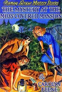 The Mystery at the Moss-Covered Mansion is the eighteenth volume in the Nancy Drew Mystery Stories series published by Grossett & Dunlap, and was first published in 1941. The original text was written by ghostwriter Mildred Wirt Benson, based upon a plot outline from Stratemeyer Syndicate co-owner Harriet Stratemeyer Adams. The book's title was changed to Mystery of the Moss-Covered Mansion when it was revised in 1971, because the story is completely different and not much of the investigation takes place at the title location. In the original, many plots and much investigation all tie back to the same house deep in the forest, while Nancy helps her father locate an heiress, expose an impostor, investigate a murder, and look into strange screams at the mansion; none of the action in the original story took place in River Heights.