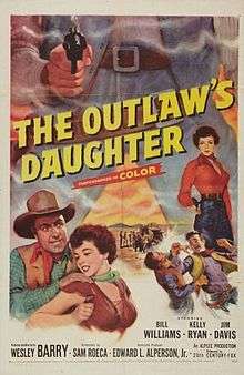 The Outlaw's Daughter is a 1954 American Western film directed by Wesley Barry and written by Samuel Roeca. The film stars Bill Williams, Sheila Connolly, Jim Davis, George Cleveland, Sara Haden, Elisha Cook, Jr. and Nelson Leigh. The film was released on November 1, 1954, by 20th Century Fox.[1][2][3]