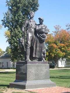 The Pioneers , also known as Pioneers , is a bronze sculpture in Central Park in Elmwood, Illinois. The sculpture is one of several works by Lorado Taft in Elmwood, his birthplace. Taft was a prominent Chicago-based sculptor with a national reputation for his monuments and fountains, including works designed for the 1893 Columbian Exposition. He donated The Pioneers to Elmwood under the condition that the city pay for its casting and mounting. The sculpture, which is 10 feet (3.0 m) tall and weighs 3,500 pounds (1,600 kg), depicts a pioneer family. The family is looking westward, symbolizing the pioneers' westward expansion, and the figures reflect the Midwestern realism of Taft's earlier works rather than the Renaissance-inspired idealism of his later sculptures. The sculpture was dedicated on May 27, 1928, and a public ceremony was held for the occasion.[2]