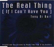 "The Real Thing" is a song from 1993 by the English singer Tony Di Bart. It was written by Di Bart, Andy Blissett and Luce Drayton.[1] Originally released in November 1993, the song only made No. 83 in the UK Singles Chart. However, a remixed version was released in April 1994, and spent a week at No. 1 in the charts in early May 1994.[2]