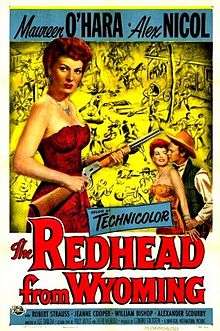 The Redhead from Wyoming is a 1953 American Western drama film produced by Leonard Goldstein and directed by Lee Sholem. It stars Maureen O'Hara as a saloon proprietress who becomes embroiled in a cattle war and Alex Nicol as the sheriff who tries to prevent it. The supporting cast includes William Bishop as a politician who provokes the war and Alexander Scourby as a prominent cattle rancher.