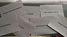 - ↑ Henry Samuel (November 20, 2016). "Nicolas Sarkozy crashes out of French Right-wing primaries as Thatcherite Francois Fillon takes surprise lead". The Telegraph. Retrieved November 20, 2016.