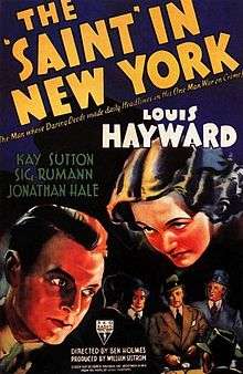 The Saint in New York is an American 1938 crime film, directed by Ben Holmes and adapted from Leslie Charteris's novel of the same name by Charles Kaufman and Mortimer Offner. Released by RKO Pictures, The Saint in New York marks the first screen appearance of Simon Templar - "The Saint". Louis Hayward stars as the title character, with Kay Sutton as his love interest. Hayward would not play The Saint again until 1953 after being replaced by George Sanders.