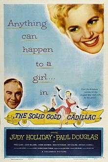 The Solid Gold Cadillac is a 1956 film directed by Richard Quine and written by Abe Burrows, Howard Teichmann and George S. Kaufman. It was adapted from the hit Broadway play of the same name by Teichmann and Kaufman, in which they pillory big business and corrupt businessmen. The film stars Judy Holliday and Paul Douglas. The film is in black-and-white except for the very last scene, which is in Technicolor.