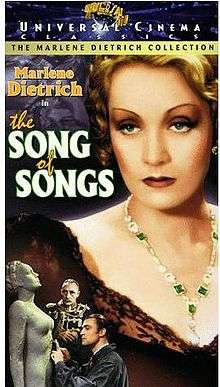The Song of Songs (1933) is an American Pre-Code romantic drama film starring Marlene Dietrich as a naive German peasant named Lily who moves to Berlin and suffers from a considerable amount of heartache.This particular version of the film was based on the 1908 novel The Song of Songs, which is also translatable from the German title of Das Hohe Lied as "The Hymn", and which is written by Hermann Sudermann. The 1914 play, The Song of Songs by Edward Sheldon also contributed to this version. It is a remake of the 1918 silent film The Song of Songs starring Elsie Ferguson and the 1924 Lily of the Dust with Pola Negri.[1]