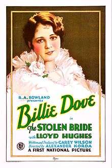 The Stolen Bride is a surviving[1] 1927 American silent drama film directed by Alexander Korda and starring Billie Dove, Lloyd Hughes, and Armand Kaliz. The film is a Hungarian-set romance across classes, where an aristocrat and a peasant fall in love.[2]