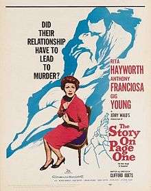 The Story on Page One is a 1959 American drama film written and directed by Clifford Odets, and starring Rita Hayworth, Anthony Franciosa, and Gig Young. Shot in CinemaScope, the film was distributed by 20th Century Fox.[2]