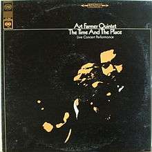 The Time and the Place is an album by Art Farmer's Quintet recorded in 1967 and originally released on the Columbia label.[1] Although originally promoted as a live album the tracks were actually recorded in the studio and audience overdubbed.[2] In 2007 Mosaic Records released the original live set from the original three-track recordings as the title The Time and the Place: The Lost Concert.