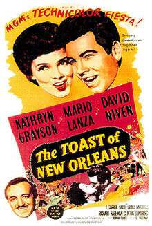 The Toast of New Orleans is a 1950 MGM musical film directed by Norman Taurog and choreographed by Eugene Loring. It starred Mario Lanza, Kathryn Grayson, David Niven, J. Carrol Naish, James Mitchell and a teenaged Rita Moreno. The film was made in the wake of That Midnight Kiss, Lanza's successful film debut, as an opportunity for Lanza to sing on the big screen again.