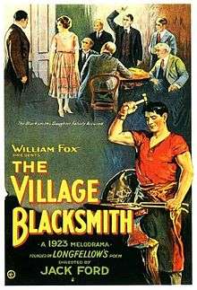 The Village Blacksmith is a 1922 American drama film directed by John Ford and produced and distributed by Fox Film Corporation. One of the eight reels survives at the UCLA Film and Television Archive, and therefore the film is considered to be lost.[1][2] It was adapted from the poem of the same name by Henry Wadsworth Longfellow.
