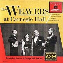 At Carnegie Hall is the second album by The Weavers. The concert was recorded live at Carnegie Hall in New York City on Christmas Eve 1955. At the time the concert was a come-back for the group following the inclusion of the group on the entertainment industry blacklist. The album peaked at number 24 on the Billboard Top 200.