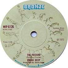 "The Wizard" is a single from rock band Uriah Heep's 1972 album Demons & Wizards and was the first single to be lifted from the album. It was composed by Mark Clarke and Ken Hensley.[1] It is a gentle, semi-acoustic ballad whose lyrics deal with a man wandering until he meets "the Wizard of a thousand kings", a possible reference to the druid Merlin, to Gandalf, to an angel, to a bodhisattva, or even God. This song is the first Uriah Heep single which had a music video.