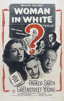 The Woman in White is a 1948 drama film directed by Peter Godfrey and featuring Alexis Smith, Eleanor Parker, Sydney Greenstreet, and Gig Young. The screenplay is based on Wilkie Collins' novel of the same name.[1]