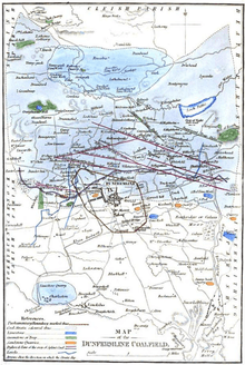 Coal deposits had been worked in the area close to the Fife coast for centuries. Coal had been important in the manufacture of lime, and of salt, both of which required huge quantities of coal.[1] Transport of heavy minerals before the era when roads had been properly made was expensive, and most minerals were carried on the backs of pack horses. The expense of even a short transit hugely increased the cost of the product.