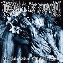 The Principle of Evil Made Flesh is the debut studio album by English extreme metal band Cradle of Filth. It was released on 31 January 1994 through Cacophonous Records, following three demos released between 1991 and 1993. The album's sound is significantly more raw than on subsequent releases, and frontman Dani Filth's vocals differ from his later style and technique. The album is a then-unusual hybrid of gothic metal and black metal.[1][2] This would be the only album featuring guitarist Paul Ryan and keyboardist Benjamin Ryan; guitarist Paul Allender also left the band at this point, but returned five years later for Midian.
