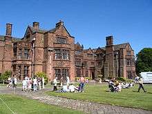 In 1913 a major reconstruction of the house took place when Elizabethan-style wings were added to the west side of the house.[2] Lomax-Simpson was again the architect. In the process of the reconstruction, most of the work designed by Douglas and Fordham was demolished, leaving from their design only two shaped gables and semicircular bay windows. Plans for further enlargement of the house were prepared by Lomax-Simpson, but these were not built because of the intervention of the First World War.[3] The 1st Viscount Leverhulme died in 1925 and the house was inherited by his son, William Hulme Lever, 2nd Viscount Leverhulme. He died in 1949 and the house passed to his son, Philip Lever, 3rd Viscount Leverhulme. Philip Lever died in 2000 and the following year the house was sold with planning permission to convert it into a hotel. The house contents sale broke the UK record by raising £10 million in 2001.[5][2]