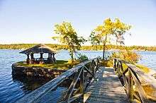 Thirty New York state parks are managed as part of the New York State Office of Parks, Recreation and Historic Preservation's Thousand Islands Region,[18] including many that are located on river islands or along the New York shore. Many of these river parks were established in the late 19th and early 20th century as part of the St. Lawrence Reservation,[19] and were among New York's earliest land acquisitions for the purpose of preservation and recreational development.[20] Among the larger parks are Wellesley Island State Park, which includes the largest camping complex in the region,[21] and Robert Moses State Park.