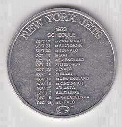 New York hoped to improve its fortunes through the AFL draft, but most Titans draftees signed with the NFL.[26] The Titans won only one preseason game, before a crowd of 73,916 against the Patriots in Philadelphia – free tickets had been given to anyone who bought $10 in groceries at an Acme Market. The New York Times columnist Howard Tuckner described the crowd as "presumably well-fed."[27] The 1961 season, which ended at 7–7, was marked by financial difficulties, as the paychecks of many players bounced; team members learned to hurry to the bank as soon as they received their pay. At the end of the season, Wismer announced that Clyde "Bulldog" Turner would be the Titans' head coach in 1962.[28] Baugh had a contract for 1962 and would have to be paid unless he quit. Although Wismer did not fire Baugh, he also did not tell him where the team's 1962 training camp would be. Baugh showed up anyway, and spent several days acting as kicking coach before Wismer came to the conclusion that Baugh would not quit. The team owner finally agreed to pay the coach his 1962 salary in monthly installments, although Baugh later stated that he was never paid.[29] Baugh's 14–14 record stood as the best mark by any Titans/Jets coach until bettered by Bill Parcells in 1997–1999.[28] In the offseason, Wismer hoped to bring a star to the Polo Grounds by drafting Heisman Trophy winner Ernie Davis of Syracuse, but Davis was drafted by the Bills instead, signed with the NFL, and died of leukemia before ever playing a professional game.[30]