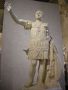 Decades of civil war during the 1st century BC had contributed greatly to the demise of the old aristocracy of Rome, which was gradually replaced in prominence by a new provincial nobility during the early part of the 1st century.[2] One such family was the gens Flavia, which rose from relative obscurity to prominence in just four generations, acquiring wealth and status under the Emperors of the Julio-Claudian dynasty. Titus's great-grandfather, Titus Flavius Petro, had served as a centurion under Pompey during Caesar's civil war. His military career ended in disgrace when he fled the battlefield at the Battle of Pharsalus in 48 BC.[3]